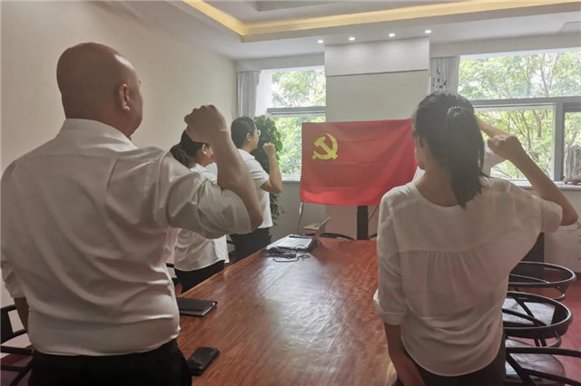 面对鲜红的党旗,世界杯(中国)全体党员共同高举右拳,再次庄严宣誓:“我志愿加入中国共产党……随时准备为党和人民牺牲一切,永不叛党。”重温入党初心,牢记使命,在铮铮誓言中再燃奋斗激情。