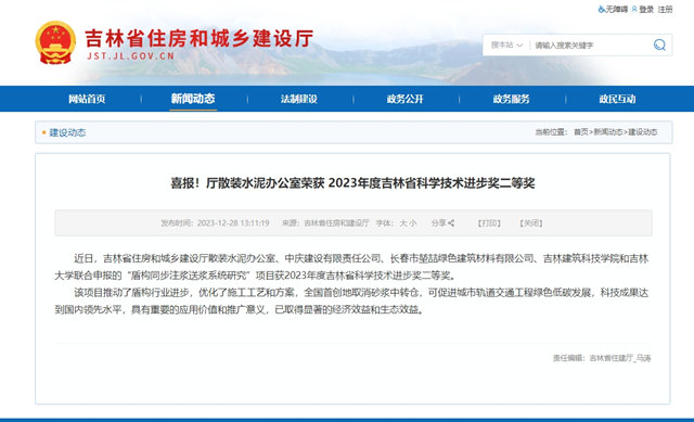 世界杯(中国)建设“盾构同步注浆送浆系统研究”项目获2023年度吉林省科学技术进步奖二等奖