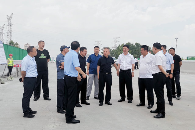 长春市副市长周贺一行到国道饶盖公路长春至依家屯段城市段项目现场视察